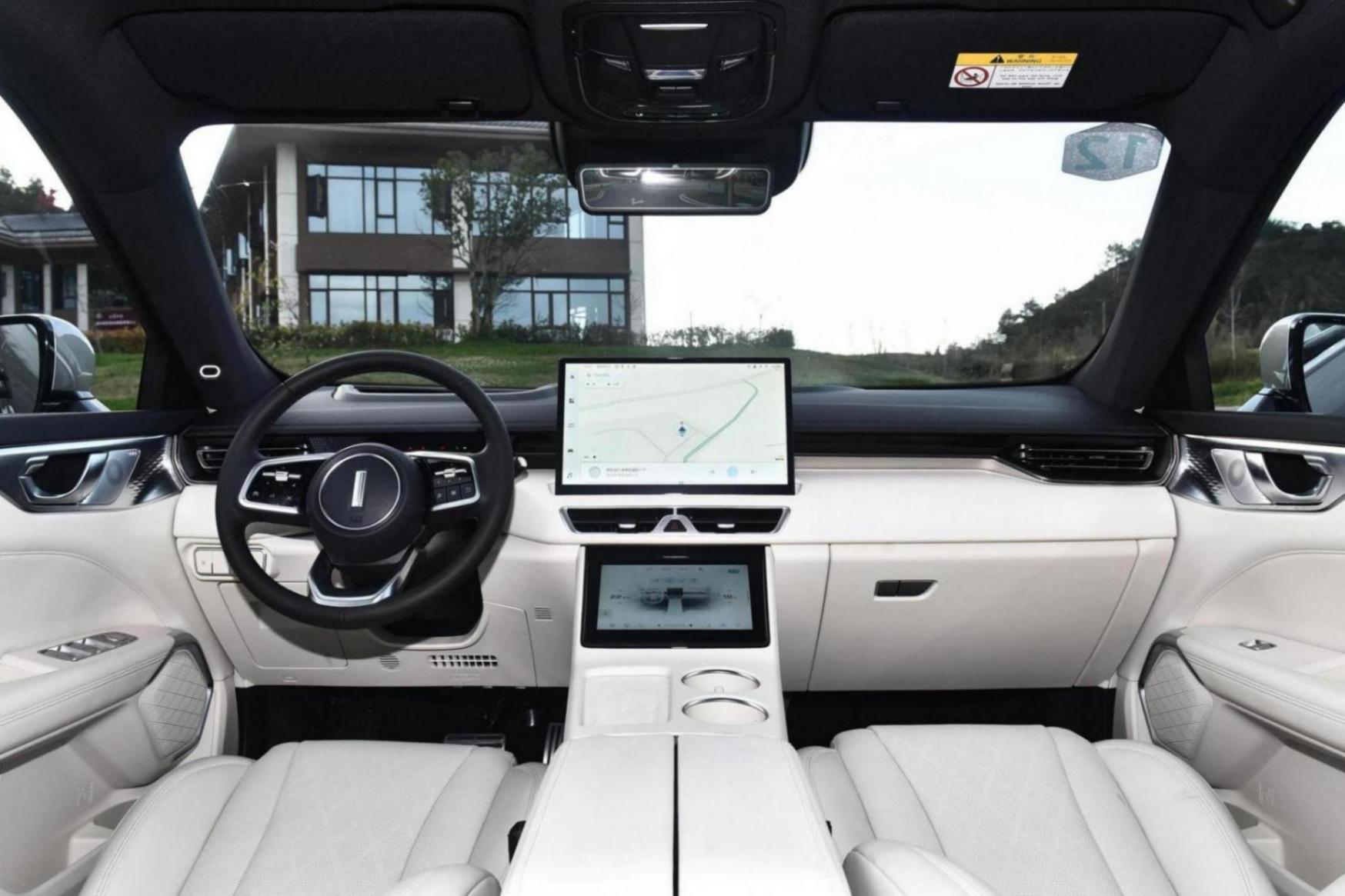 內飾部分,摩卡Hi4繼續延續現款車型的風格,屬于科技簡約的布局,中控屏幕的尺寸達到了14.6英寸,搭載Coffee OS 2智能座艙系統,方向盤前方還有一塊9.2英寸的液晶儀表和W-HUD的組合,同時中控下方還有一塊9英寸的控制屏幕,這里集成了空調/座椅等相關功能的控制。