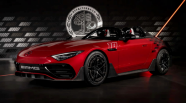 相信大家能一眼看出,這輛PureSpeed是基于最新的SL敞篷車打造,前臉也努力地與SL進行差異化,使用了封閉式的中網以改善空氣動力學,并保留了SL的前大燈。保險杠的造型也非常硬核,大面積的進氣格柵保證了后方那副大機器的散熱,碳纖維前唇的出現對于限量版車型來說就不算奇怪了。