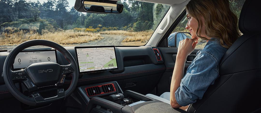 新車內(nèi)飾與方程豹豹5的內(nèi)飾在風(fēng)格上十分相似,配備了四輻方向盤、10.25英寸全液晶儀表盤、12.8英寸可旋轉(zhuǎn)中控屏以及12英寸W-HUD抬頭顯示屏,并提供智能語音、在線導(dǎo)航、車聯(lián)網(wǎng)、540°全景影像、唱吧、手機(jī)遠(yuǎn)程控制等功能,并支持Apple CarPlay/Android Auto手機(jī)互聯(lián),有著相當(dāng)不錯(cuò)的科技感。此外,擋把后方配備了一系列撥桿/按鈕,呈現(xiàn)出硬派越野車的機(jī)械感。