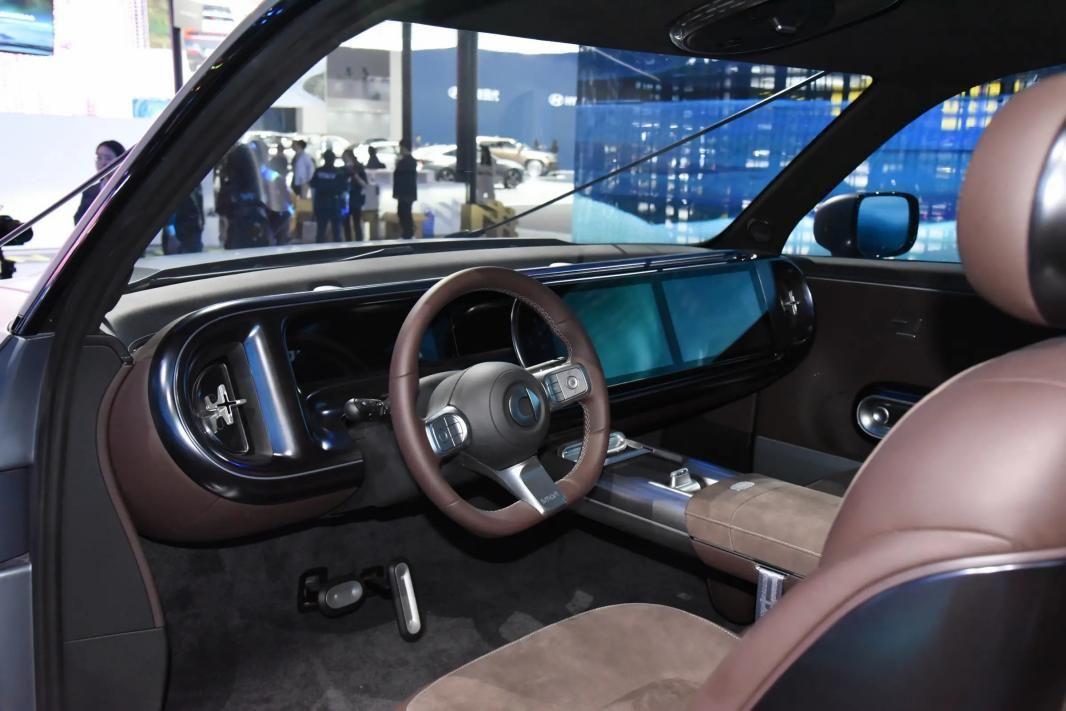 來到側面,本車采用對開門設計,相信工程師們為了保證車身強度下了不少的功夫。車內座椅設計靈感來自甜甜圈,這個配色讓我想到了巧克力餡的甜甜圈。副駕座椅帶有腿托,同時配備零重力座椅模式。