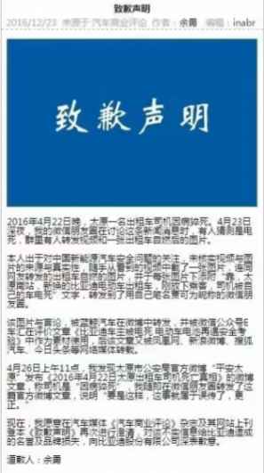 相信很多朋友看到這里已經能夠猜得到,這位賈博士陰陽的車企正是比亞迪。而事實上這已經不是他第一次和比亞迪有淵源了,早在2016年,太原某出租車司機因病猝死,賈博士便造謠車主是被電死,隨著比亞迪服務部以及公安機關的介入,最終賈博士在事實面前不得不公開道歉。