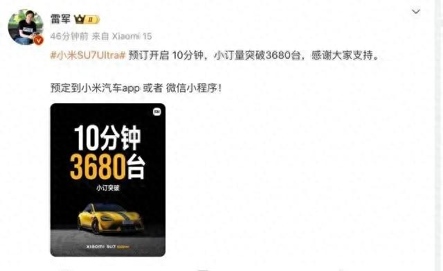 29號晚上10點半開始接受預訂,定金1萬,要是后悔了隨時能退。結果呢?才10分鐘,訂單就破3680臺了。你算算,這得多少錢?差不多30個億啊!