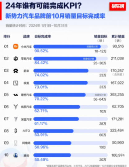 據(jù)統(tǒng)計(jì),截至10月底,小米汽車已交付90516輛新車,年度銷量目標(biāo)的完成率已達(dá)90.25%。若保持此增速,即便是新設(shè)定的12萬(wàn)輛銷售目標(biāo)也能輕松達(dá)成。目前,小米汽車面臨的問(wèn)題并非訂單不足,而是產(chǎn)能限制。例如,小米SU7 Pro和SU7 Max的提車周期分別為22至25周和20至23周,這樣的等待時(shí)間在行業(yè)內(nèi)極為罕見,遠(yuǎn)超競(jìng)爭(zhēng)對(duì)手。