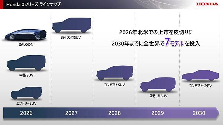 本田對于0 Series的未來規劃已經相當清晰。據悉,2026年本田將推出三款新車,其中包括Saloon的量產版,以及一款中型SUV和一款入門SUV。從2028年至2030年,本田計劃每年推出一款新車,分別是緊湊型SUV、小型SUV和緊湊型轎車。
