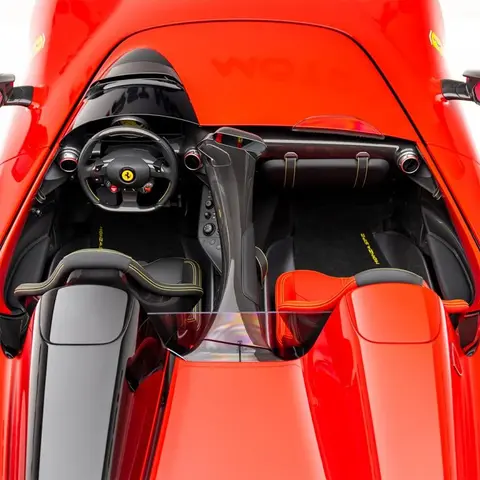 側面視覺相當復古,融入了Barchetta經典特征的Monza SP1/SP2,與無頂spider車型類似,都是沒有車頂。但車頭有一塊玻璃充當風擋。行車時駕乘人員在需要帶著頭盔和護目鏡,當然一件防風保暖的皮衣也是少不了,儀式感滿滿。