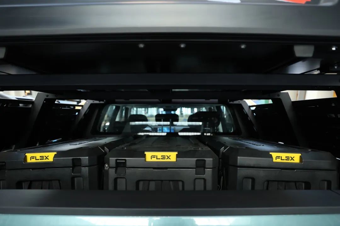 空間方面,星際X的后斗容積高達1200L,無論是露營用品還是攝影套件都輕松裝下。純電版車型還擁有國內唯一電動前備廂,容積達到236L,其橫向寬度達720mm,承載力超120kg,可容納兩位成人并排而坐,化身觀景臺、垂釣臺等,實用性不俗。除此之外,當用戶抵達目的地后,通過“百變魔艙”功能,星際X還可一鍵降下后圍玻璃,“打通”后斗和乘員艙,進而釋放超3000 L連通空間。而到了夜晚,星際X純電版搭載的“星云大燈”可實現超400m的照射距離,夜間行車更安全。