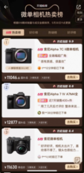 國補疊加天貓618,帶動數(shù)碼相機消費需求熱潮,品牌迎來銷量大爆發(fā)。