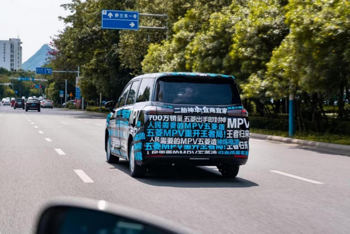 在車身的側面,新車采用的是非常端正的輪廓,它的車身也比較修長,在偽裝上我們可以看到上面顯示“人民需要的MPV五菱造”的口號,我們知道五菱有句“人民需要什么,五菱就造什么”,看來這款MPV還真是有專屬的口號。它的車身側面中間采用起伏式的腰線,采用了前傾式的C柱,看起來十分的個性化,車的底部采用的是簡約化的包圍,并沒有在細節上體現出來。