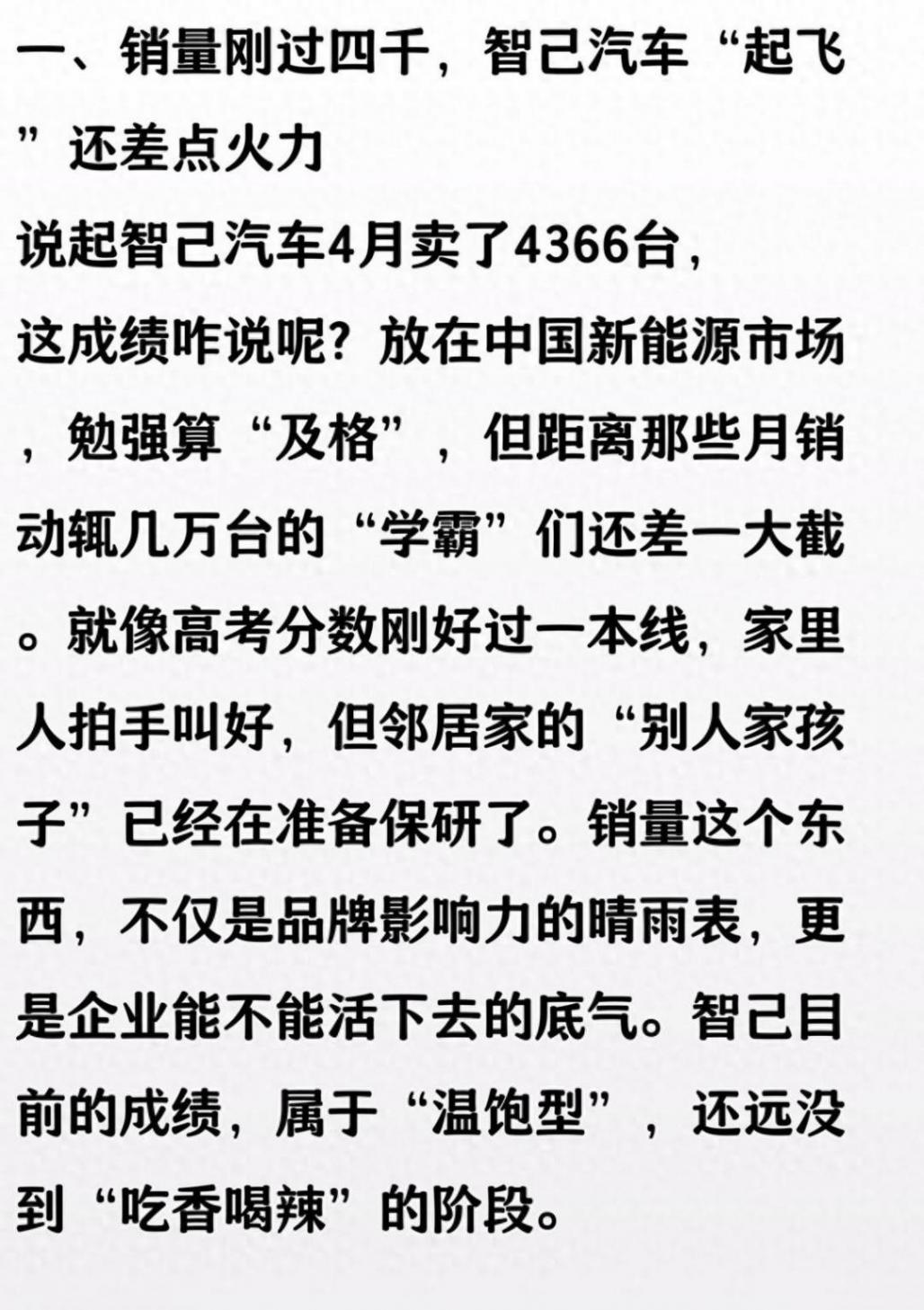 智己這車,我去年底就琢磨著換,跑去他們店里看過,銷售說今年會有大動作,結果四月份才賣四千多臺,跟我想象的差太遠。朋友買了,說開著還行,電池續航沒吹得那么神。價格倒是一直優惠,車機反應還慢半拍。我問那銷售,啥時候能掙錢???他說現在都賠本賺吆喝。 我看他們每個月都各種活動,朋友圈發得比我還勤,搞得跟不要錢似的。售后服務還得排隊,問他們啥時候能不賠錢,銷售也不吱聲...