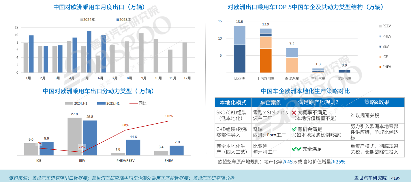 其中,歐洲始終是中國車企全球化的核心戰略高地。面對關稅政策與貿易壁壘升級,中國車企積極調整策略,通過動力路線結構多元化與本地生產能力建設,重塑增長路徑,強化在歐洲的長期存在與品牌承載力。例如,比亞迪在匈牙利建設工廠,上汽計劃在西班牙擴大產能,吉利通過與當地企業合作,共同研發和生產適合歐洲市場的電動汽車產品。