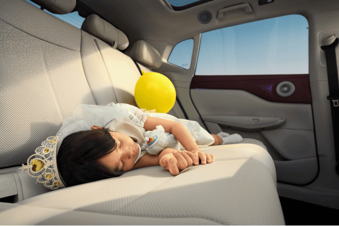 大內(nèi)艙可實(shí)現(xiàn)前排座椅完全放平,與后排無縫連接,形成“一馬平川”的貫通大平層。無論是搬運(yùn)大件物品,還是戶外露營大床房,都游刃有余。1038mm有效腿部空間和1380mm座椅寬度,打造舒展大二排。
