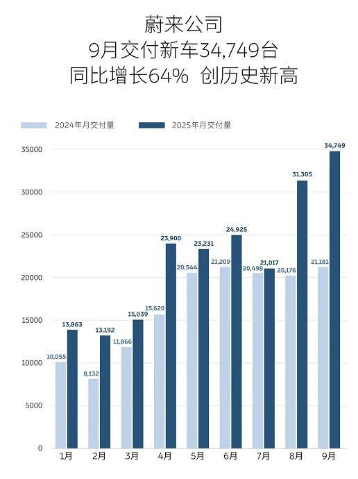 在“三萬俱樂部”中,蔚來和理想呈現(xiàn)出截然不同的發(fā)展態(tài)勢。蔚來9月交付新車34,749臺,同比增長64%,創(chuàng)歷史新高。其中,蔚來品牌13,728臺,樂道15,246臺,而9月交付最驚人的不是L90(上市2個月交付21,,626輛),而是firefly螢火蟲,賣了5,775臺。