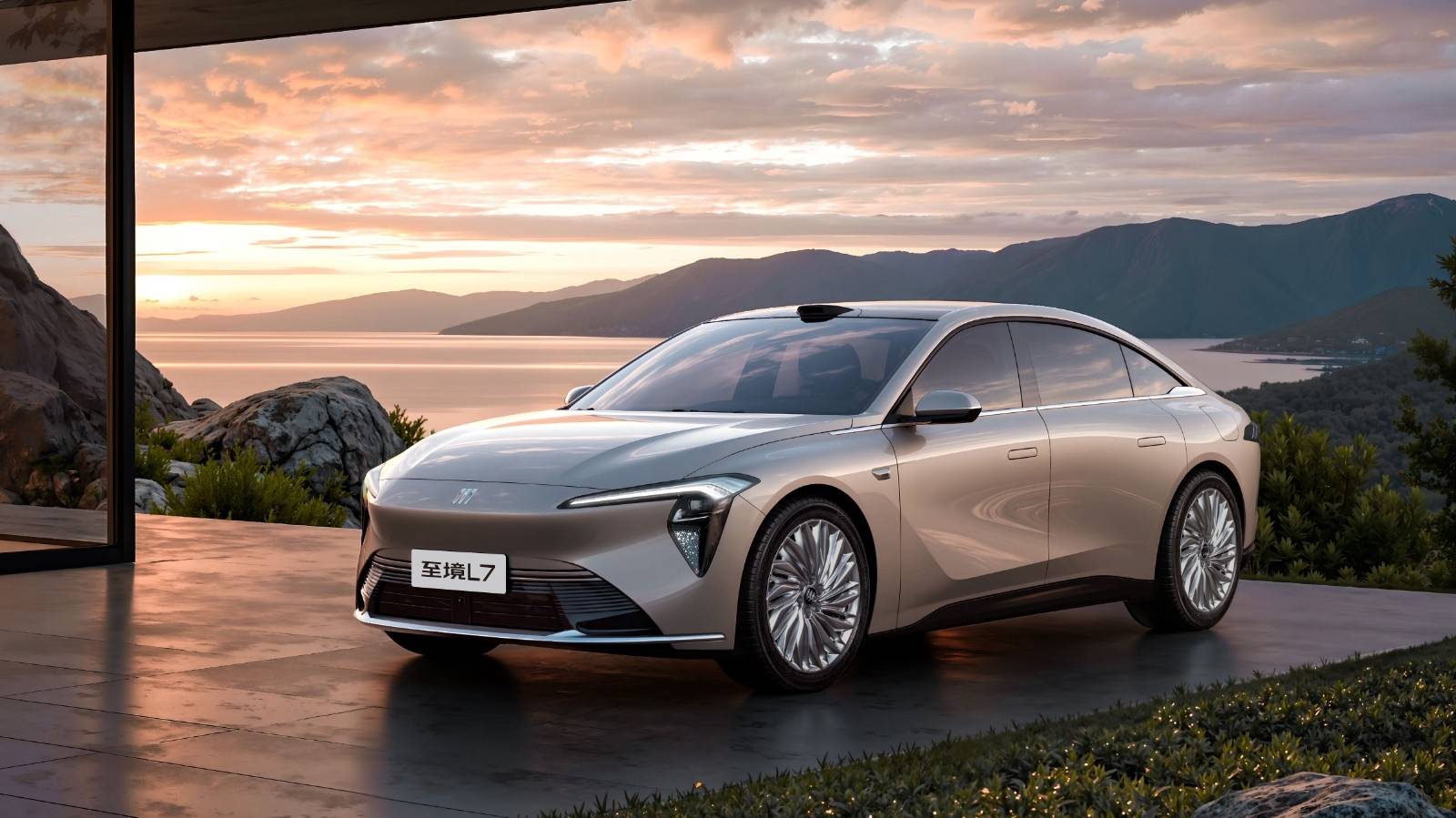 至境L7車(chē)身尺寸分別為5032毫米、1952毫米和1500毫米,軸距3米,溜背式設(shè)計(jì)。