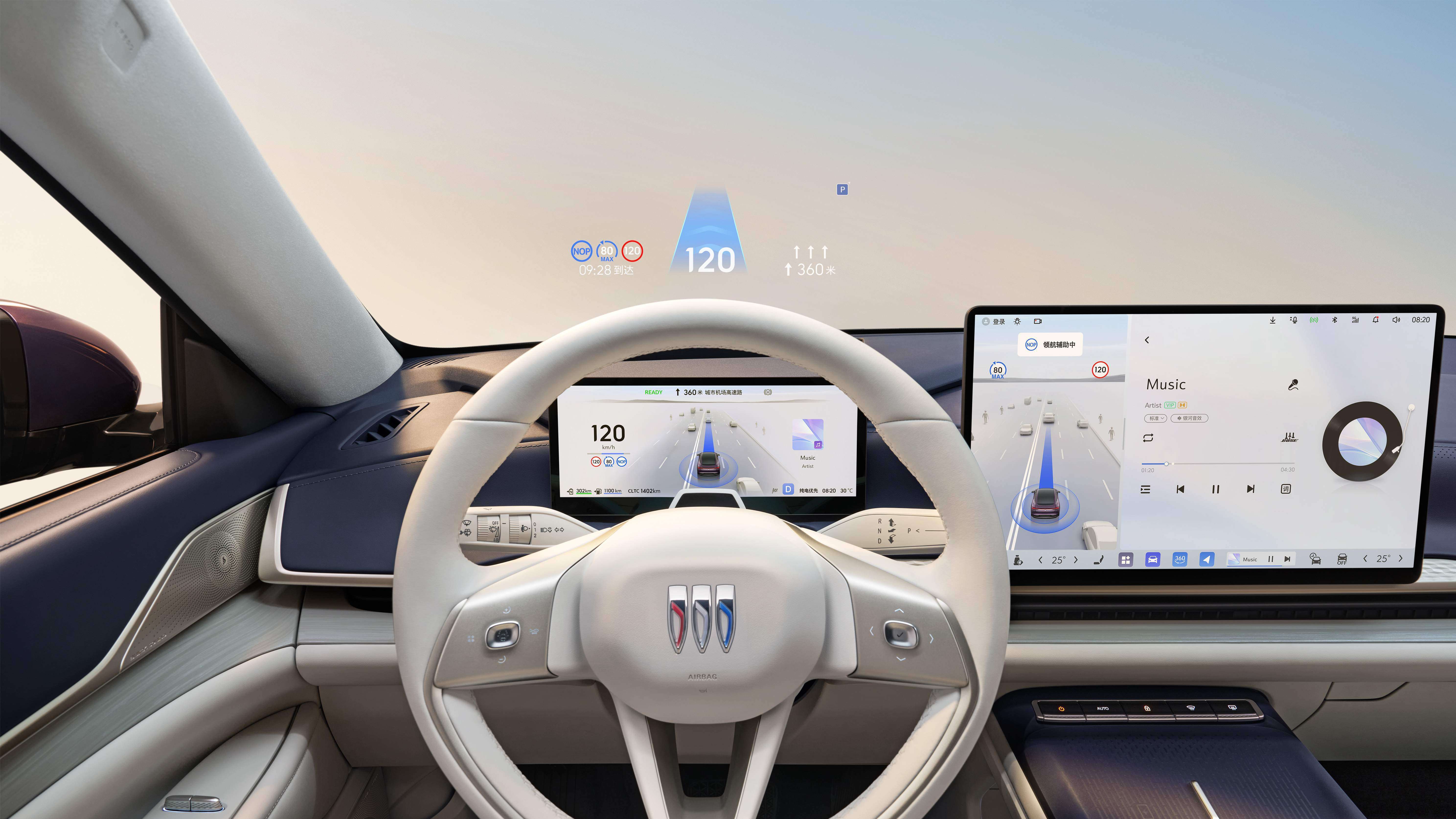至境L7中高配車(chē)型搭載50英寸抬頭顯示系統(tǒng),可將15組以上駕駛信息與真實(shí)道路場(chǎng)景融合;在駐車(chē)狀態(tài)下,這套系統(tǒng)支持高清視頻播放,投影電影、歌詞等信息。