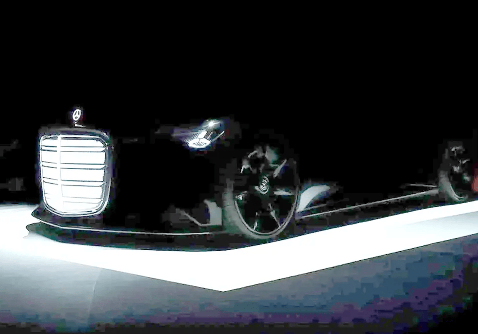 從預告圖中可以看到,新車最搶眼的便是車頭的可發光格柵,它的尺寸明顯要比全新GLC EV上的格柵還要大,同時新車還配備立標設計,目前只有奔馳E級和S級還保留立標版本,同時新車的造型也比較容易讓人想起經典的W112/W113(第三代奔馳S級),因此推測該車很有可能會是全新一代S級的概念車。