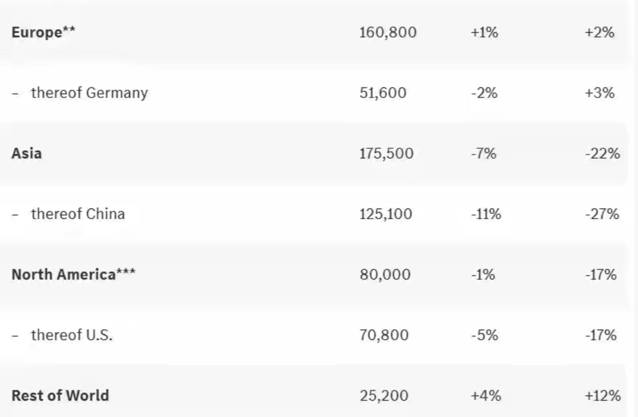 與中美兩大市場形成鮮明對比的是,歐洲市場銷量微增2%,其中德國本土市場增長3%,西班牙增長5%,波蘭更是大幅增長20%。在南美和海灣國家,奔馳也表現強勁,分別實現了45%和33%的增長。