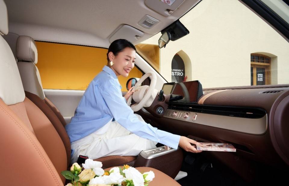 外觀之上,寶藏版延續了Lumin家族圓潤靈動的造型語言,前臉線條簡約流暢,融入鐳雕透鏡大燈與懸浮式車頂設計,都市感與時尚度并存。內飾部分,提供鎏金棕與水墨色兩種配色方案,并以玫瑰金飾條、荔枝紋中控臺、包裹式座椅等細節營造出輕奢氛圍。更大面積前擋玻璃與可調遮陽板化妝鏡,讓駕駛視野更開闊,也兼顧日常精致感。它不只是代步工具,更像一件能彰顯生活品味的“都市單品”。