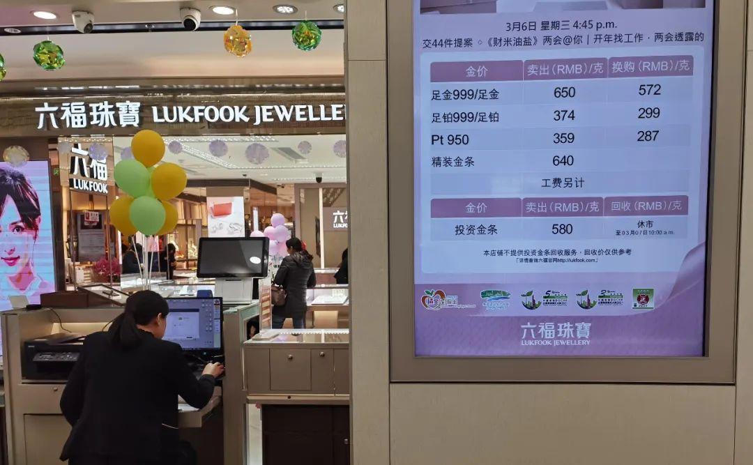 3月7日,老廟黃金公布的上海區域金價為651元/克,周大福、潮宏基、六福珠寶、周生生、謝瑞麟公布的境內足金首飾價格則突破了655元/克。