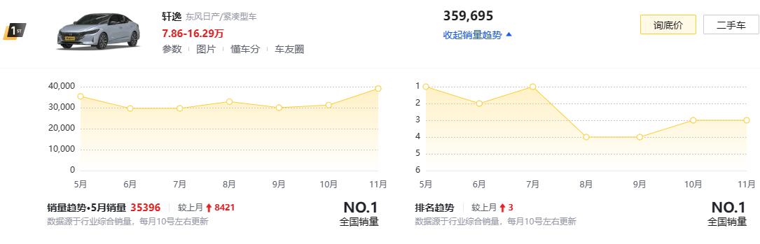 據(jù)最新行業(yè)綜合銷量數(shù)據(jù)顯示,軒逸近一年的銷量高達(dá)359695輛,比第二名的大眾朗逸多了1萬多輛,比第三名的比亞迪秦PLUS DM-i多了6萬多輛。足以可見軒逸是非常受市場的青睞,同時也備受廣大消費者的支持和喜愛。