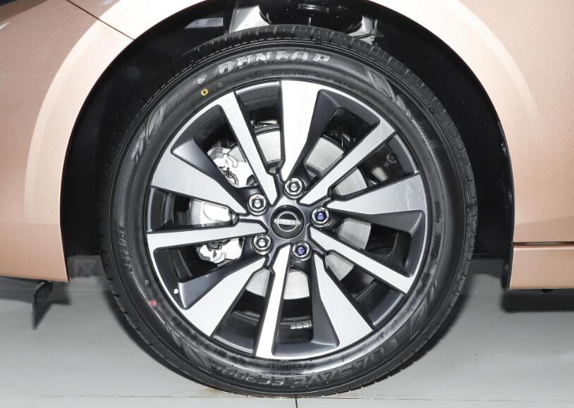 而輪轂的中心是日產(chǎn)顯眼的標(biāo)志logo,輪胎采用的是鄧祿普這樣的大品牌,顯示了其使用特定品牌的高品質(zhì)輪胎。