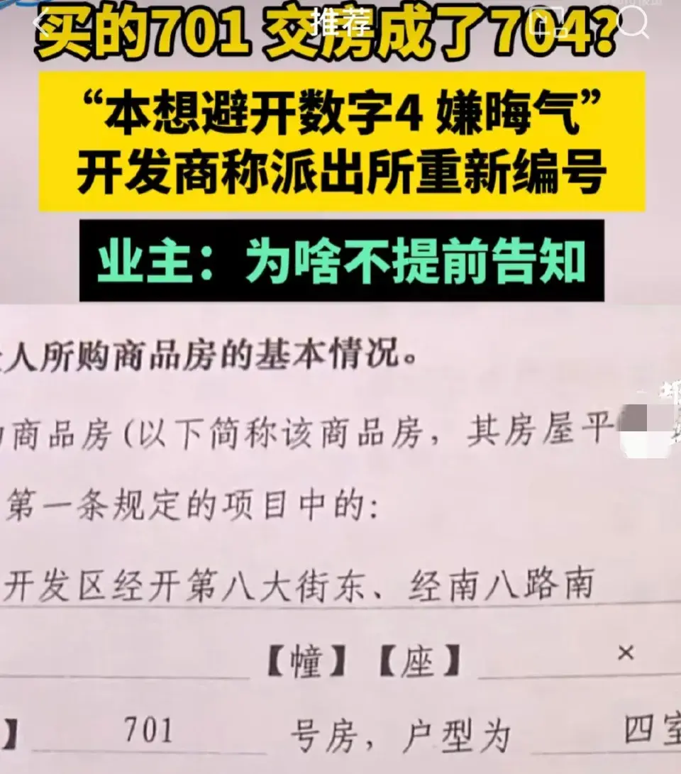 劉女士對房號“704”的采光十分滿意,然而,但購買時她卻有些猶豫。在中國的文化傳統(tǒng)中,“4”的發(fā)音與“死”相近,這在很多人眼中被視為不吉利的數(shù)字。