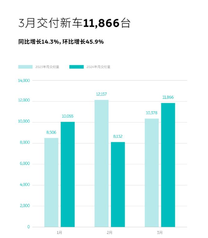 3月銷量/交付量:極氪3月銷售新車13012輛