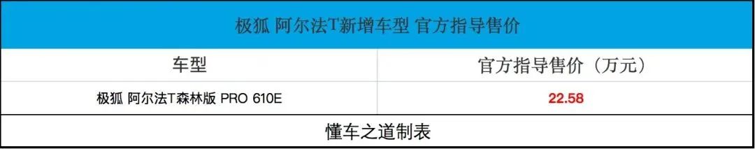 1月25日,我們從ARCFOX極狐官方了解到,極狐 阿爾法S(ARCFOX αS)森林版PRO 650E和極狐 阿爾法T(ARCFOX αT)森林版PRO 610E兩款配置車型正式上市,售價分別為22.78萬和22.58萬。據了解,極狐 阿爾法S(ARCFOX αS)森林版PRO 650E和和極狐 阿爾法T(ARCFOX αT)森林版PRO 610E是在原森林版的基礎上圍繞前后排座椅加熱/按摩、真皮方向盤、熱泵空調等配置進行升級。
