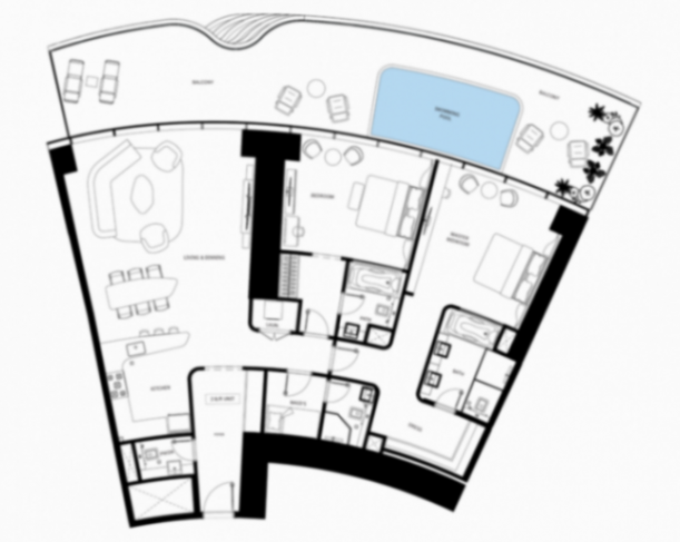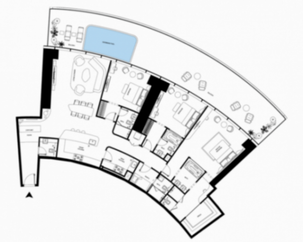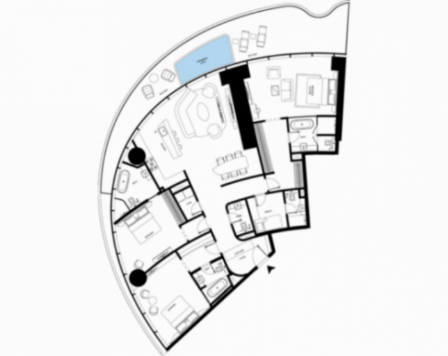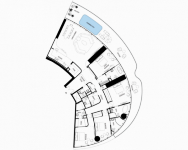 大廈共 65 層,將容納 150 套住宅,每套住宅均以標志性汽車模型命名,其中包括世界上最昂貴的汽車——烏倫豪特轎跑車。此外,梅賽德斯-奔馳廣場為住戶提供一系列獨特的混合用途設施,包括餐廳、運動和健康區、休息室、非汽車零售、展覽空間和停車位。