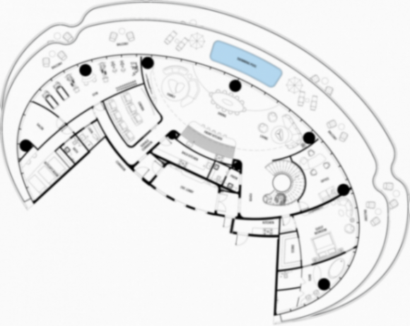 塔樓融合建筑與汽車兩種類型的設計精髓——采用極簡主義風格,蜿蜒的曲線讓人聯想到梅賽德斯-奔馳汽車的流線型特征,橢圓形輪廓簡潔而富有現代感,巧妙地體現了超現代汽車設計的曲線美感,也呼應了品牌的未來主義視覺。