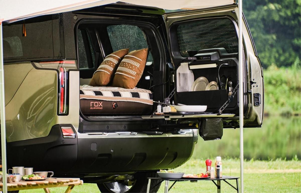 這款車的露營屬性,則是一大亮點。極石01的尾門可以當(dāng)作“戶外廚房”使用。自帶照明操作臺,220V供電、直飲熱水、操作臺、儲物收納等。