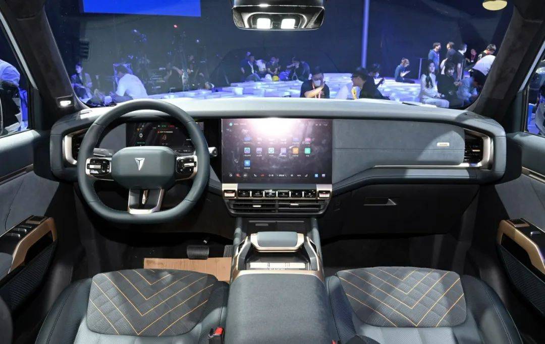 打開車門,整車的內飾主打科技與簡約。中控、門板等細節處均采用了軟質包裹,用料確實很舍得。全新的方向盤、飛船推拉桿等設計,讓人非常有駕駛欲望。而14.6寸內嵌高清智慧屏也沒有缺失,且下方保留了物理按鍵。