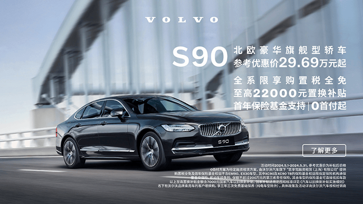 不得不說,沃爾沃S90以其豪華舒適和極致安全的品質,儼然成為市場上備受追捧的車型。加上在這五月限時優惠政策的加持下,不到30萬的價格便可輕松擁有,你還在等什么?趕緊到店體驗咨詢下吧!