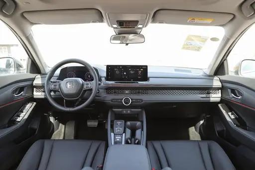 內飾中控臺扁平修長,層次劃分比較清晰,軟性材質覆蓋面比較廣,觸感和視覺質感均比較不錯,在按鍵式電子換擋和12.3英寸中控屏以及10.2英寸儀表屏助力下,科技氣息比較濃郁。車機配備:Honda CONNECT車載智能系統,OTA升級,語音識別控制系統等。