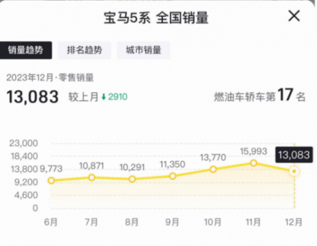 比如寶馬5系,去年全年上險量仍達到14.3萬輛,臨近換代時,月銷量依然穩穩破萬。